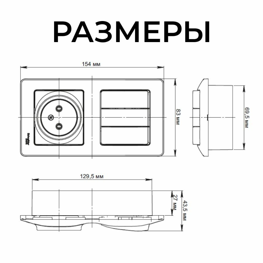 Отзывы на Блок: розетка с заземлением со шторками и 3-кл. выключатель Glossa Schneider Electric, Белый