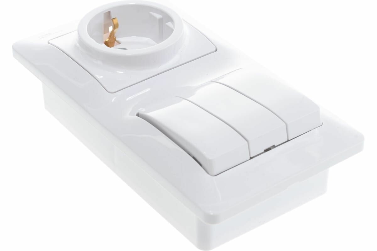Блок: розетка и 3-кл. выключатель Glossa Schneider Electric, белый