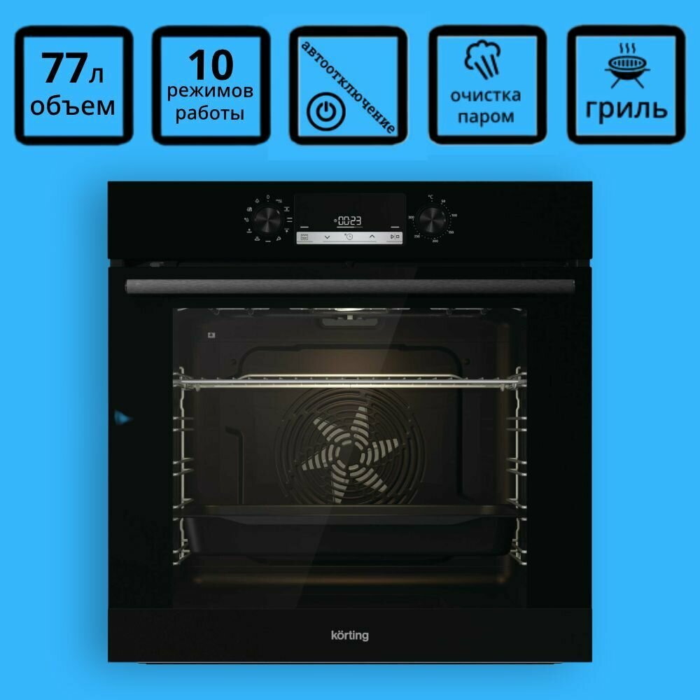 10 цен на Электрический духовой шкаф Korting OKB 6820 EN, объем 77 л, 10 режимов, гриль, конвекция, таймер, автоматическое охлаждение, черный, 60 см