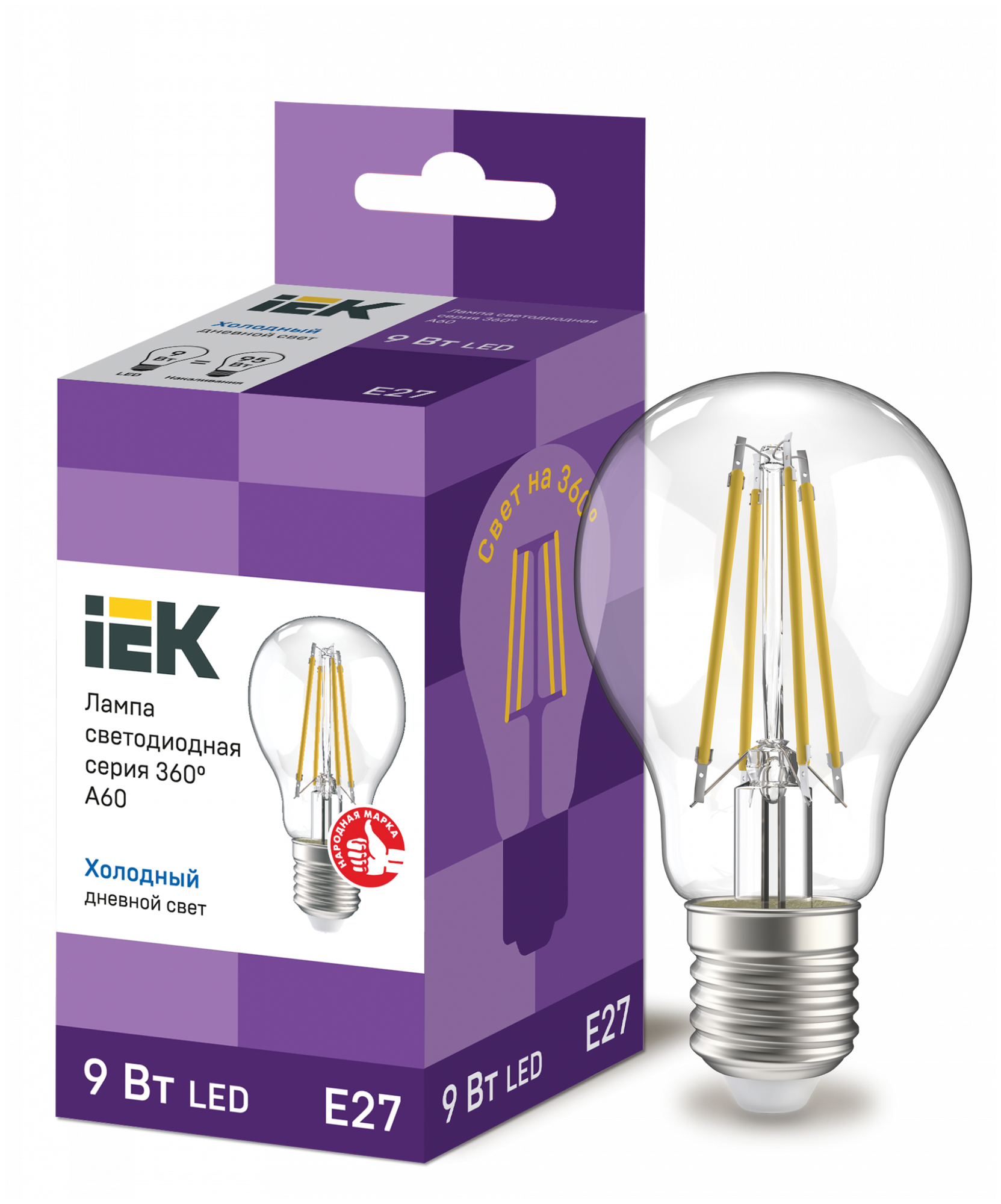 Отзывы на Лампа светодиодная A60 шар прозр. 9Вт 230В 6500К E27 серия 360°, IEK LLF-A60-9-230-65-E27-CL (10 шт.)