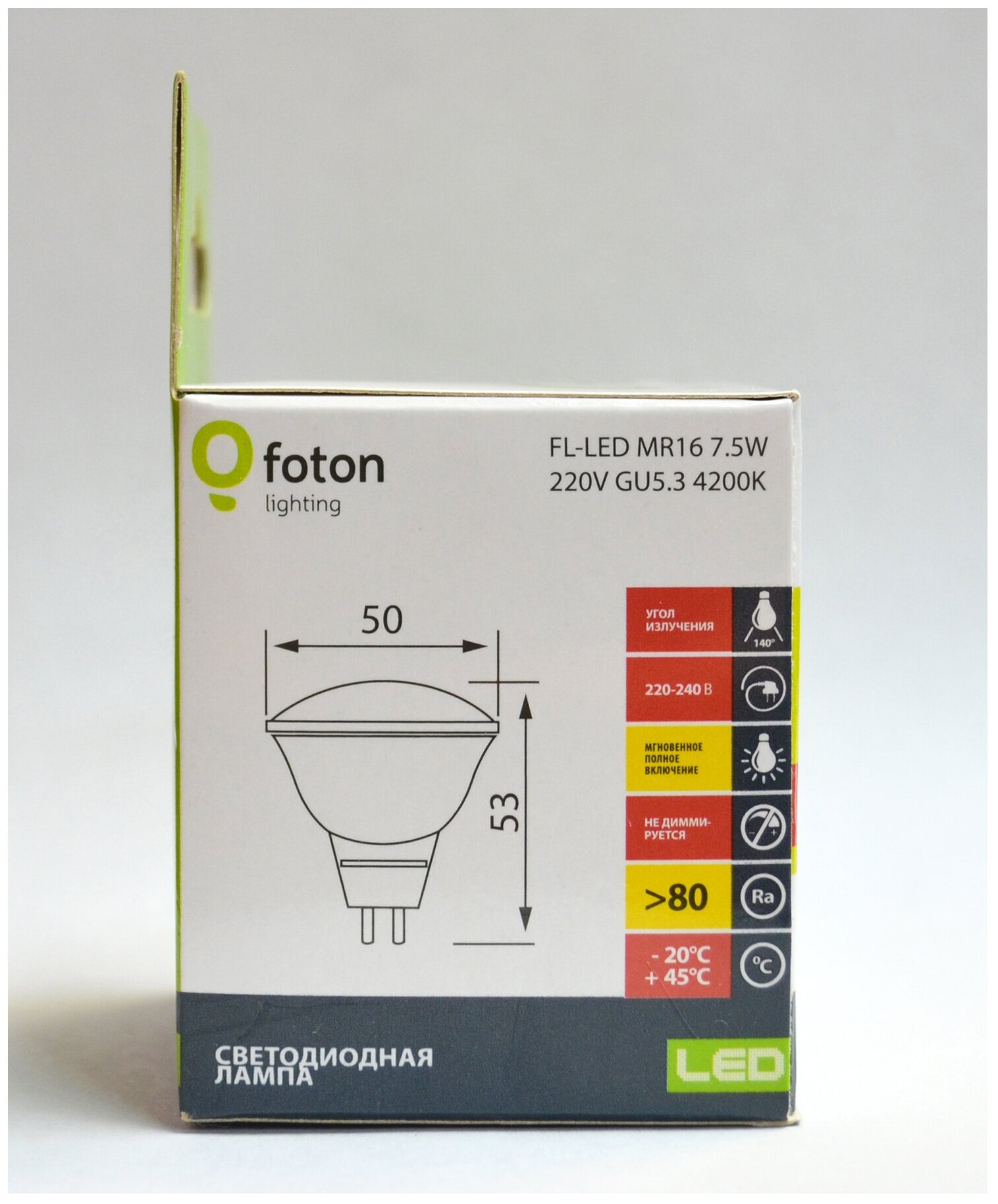 Лампочка светодиодная Foton Lighting Софит MR16 GU5.3 7,5Вт 220В 700Лм 4200К Дневной белый, упаковка 10шт