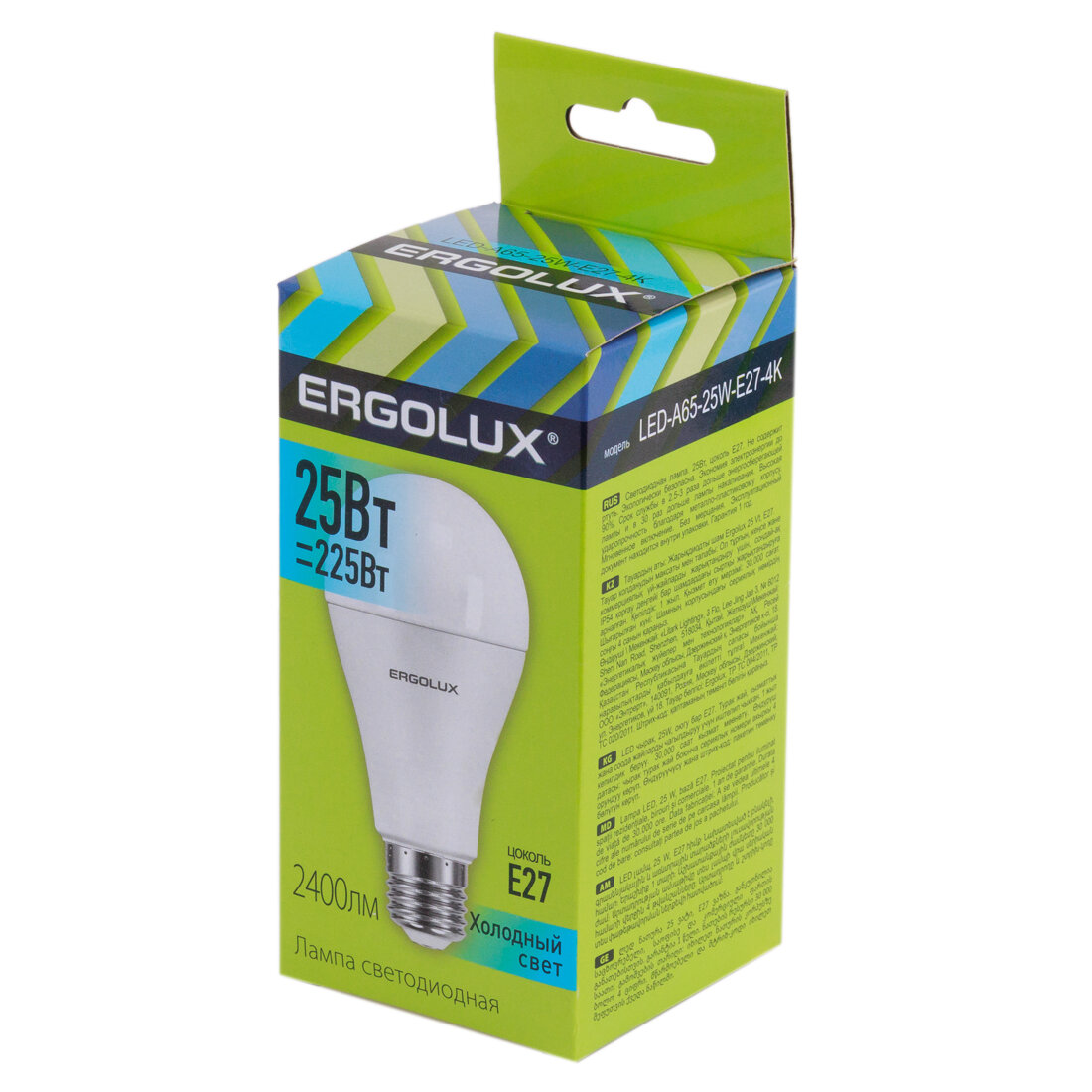 Лампа светодиодная E27, 25 Вт, 225 Вт, груша, 4000 К, свет холодный белый, Ergolux