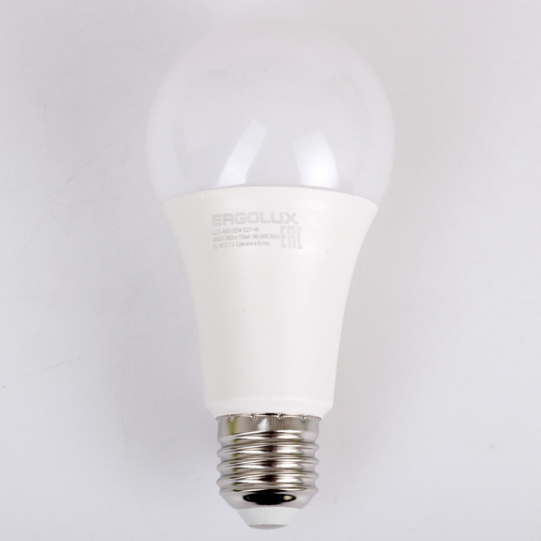 Отзывы на Ergolux ЛОН A65 E27 25W(2400lm 270°) 4500K 4K матовая 127x64 пластик/алюм. LED-A65-25W-E27-4K