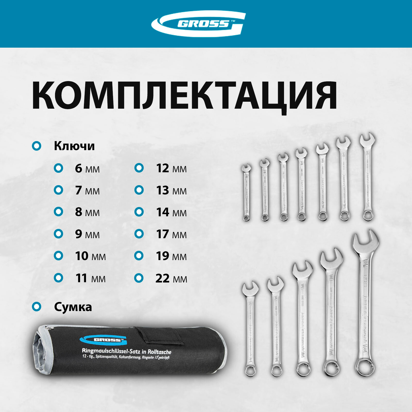GROSS Набор ключей комбинированных 6-22 мм 12 шт GROSS 15149