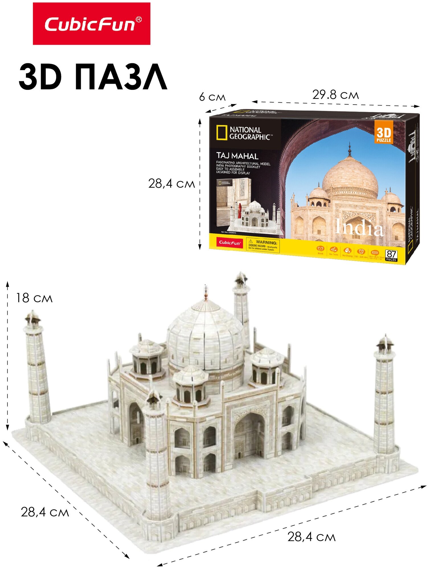 3D пазл CubicFun National Geographic Тадж-Махал, 87 деталей (DS0981h) информация: