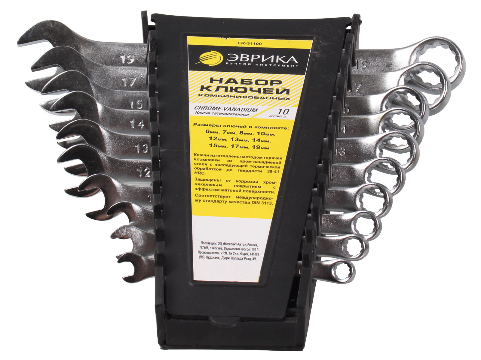 ER31100 эврика Набор ключей комбинированных 6-19мм 10 предметов в холдере сатинированные эврика информация: