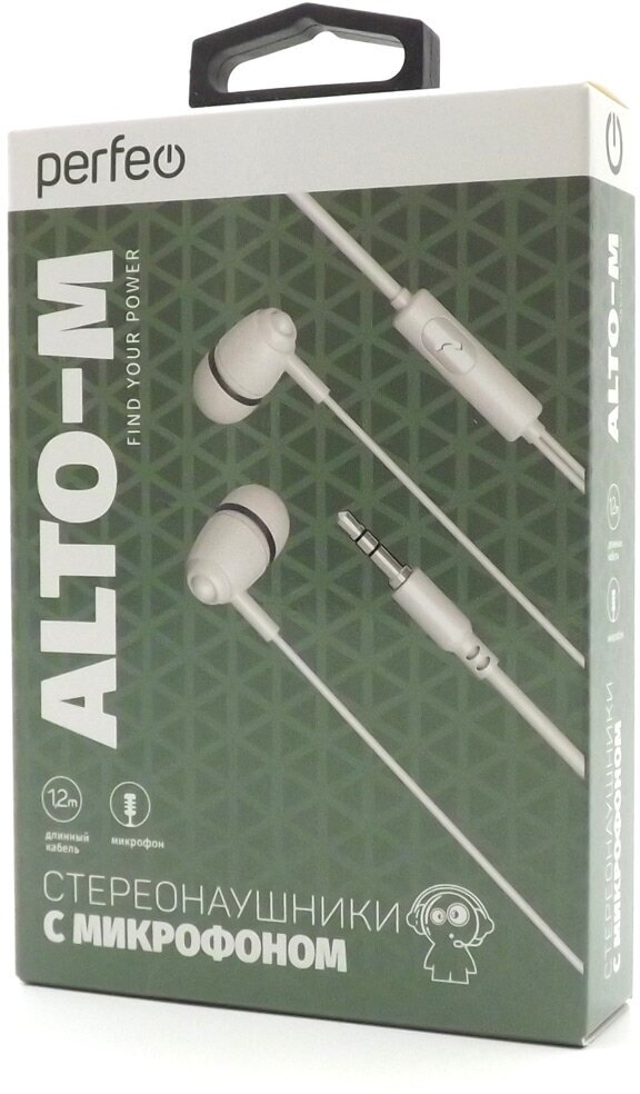 Perfeo Наушники Perfeo ALTO-M, вакуумные, микрофон, 104 дБ, 32 Ом, 3.5 мм, 1.2 м, белые информация: