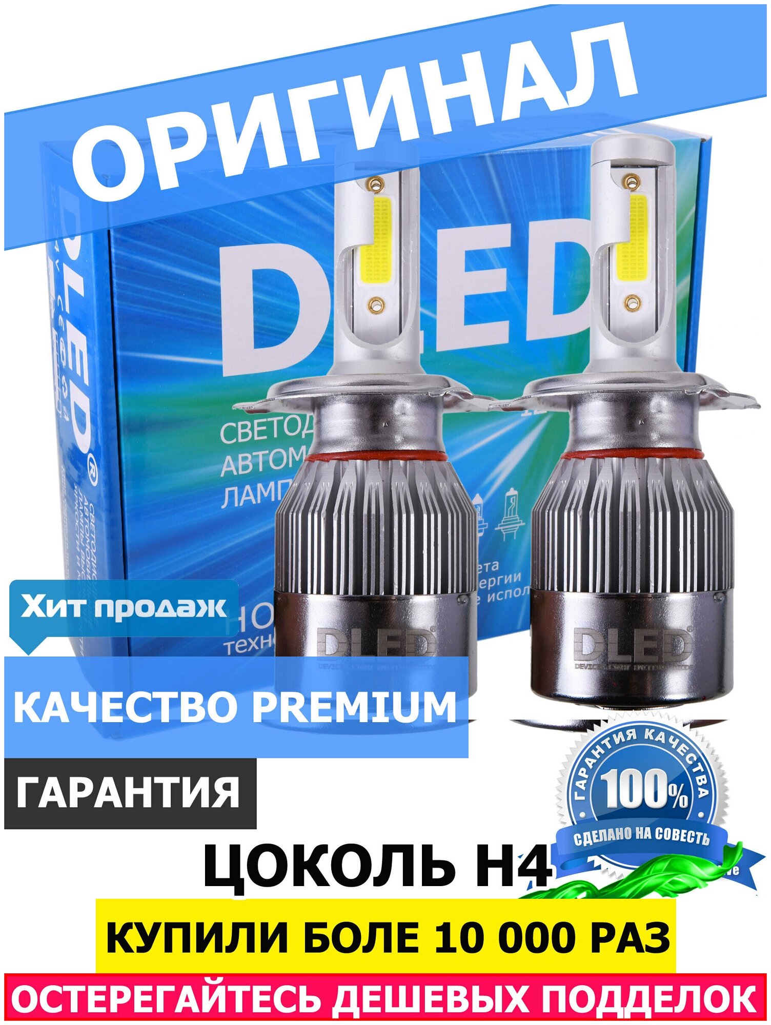 Отзывы на Автомобильная LED лампа Dled H4, C6 Original, 12V, 6500K, в наборе 2 шт .