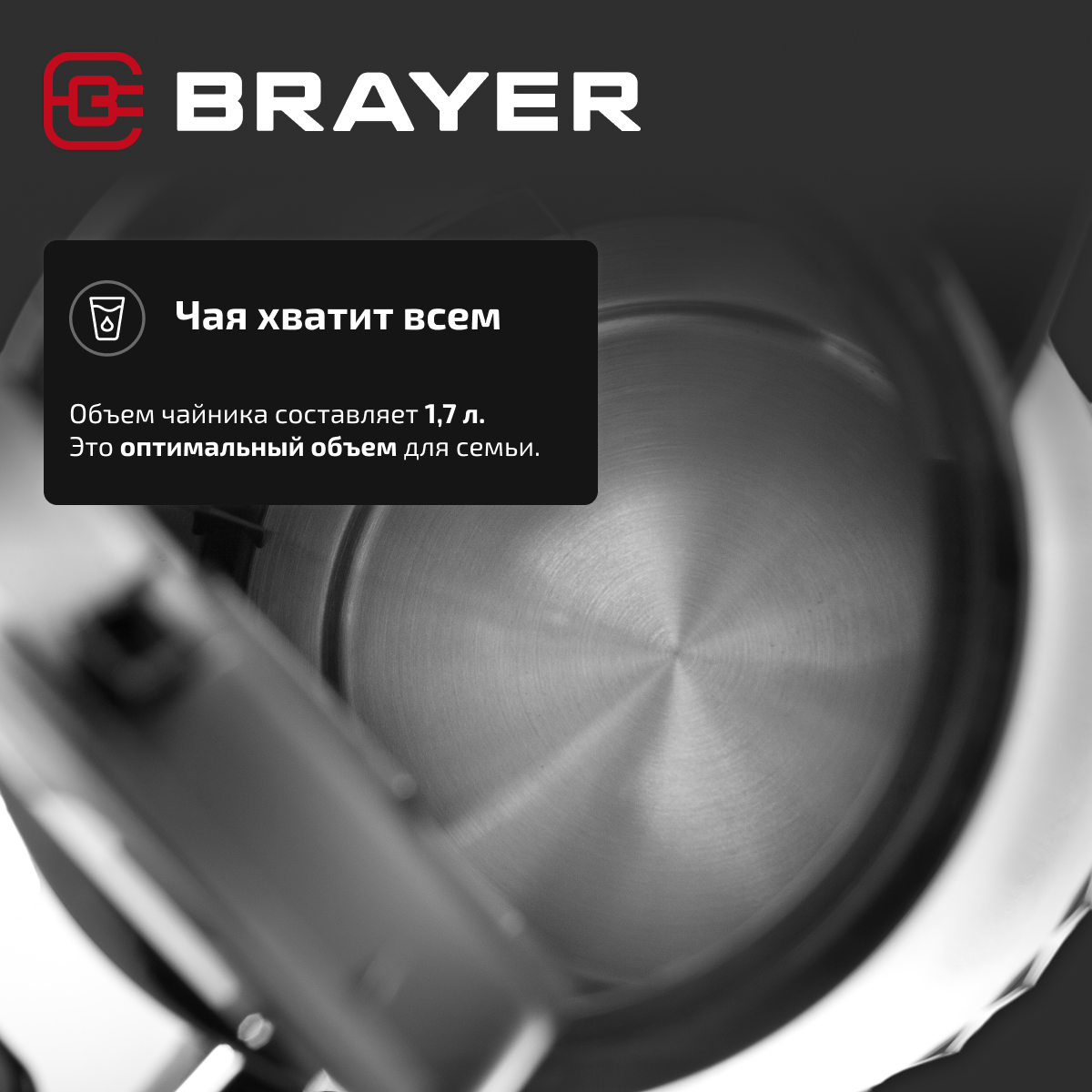 Чайник электрический BRAYER BR1009, 2200 Вт, 1,7 л, автоотклечение, термостойкий пластик, поворотный корпус 3 107 ₽