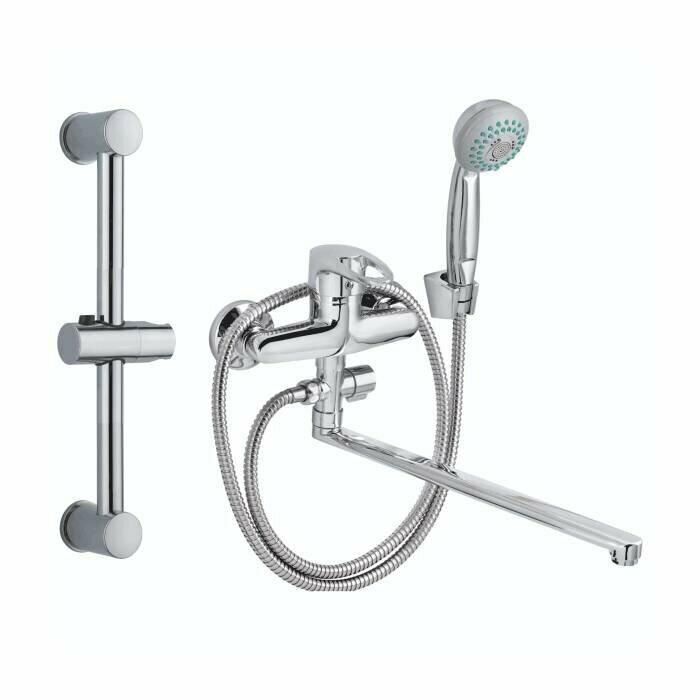 | Комплектация | корпус смесителя — 1 шт. / рычаг — 1 шт. / эксцентрики с отражателями — 2 шт. / картридж — 1 шт. / гибкий шланг — 1 шт. / массажная лейка — 1 шт. / дивертор поворотный — 1 шт. / настенный держатель лейки (стойка) — 1 шт. |