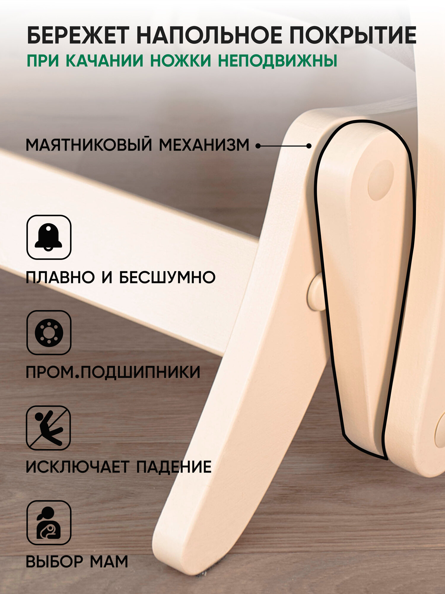 Кресло-качалка с мятниковым механизмом для дома и дачи Glider 68 в ткани Микровелюр, цвет бежевый / дуб шампань 13 190 ₽