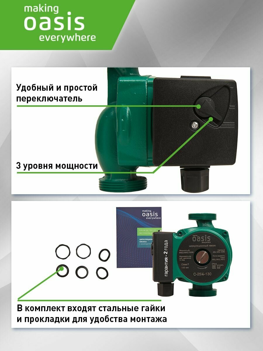Отзывы на Насос циркуляционный для отопления making Oasis everywhere C-25/4-130, 72 Вт, напор 4 м, 40 л/мин