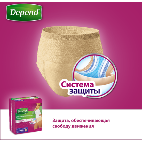 Впитывающее нижнее белье Depend/Депенд для женщин M/L (44-50) 10 шт.