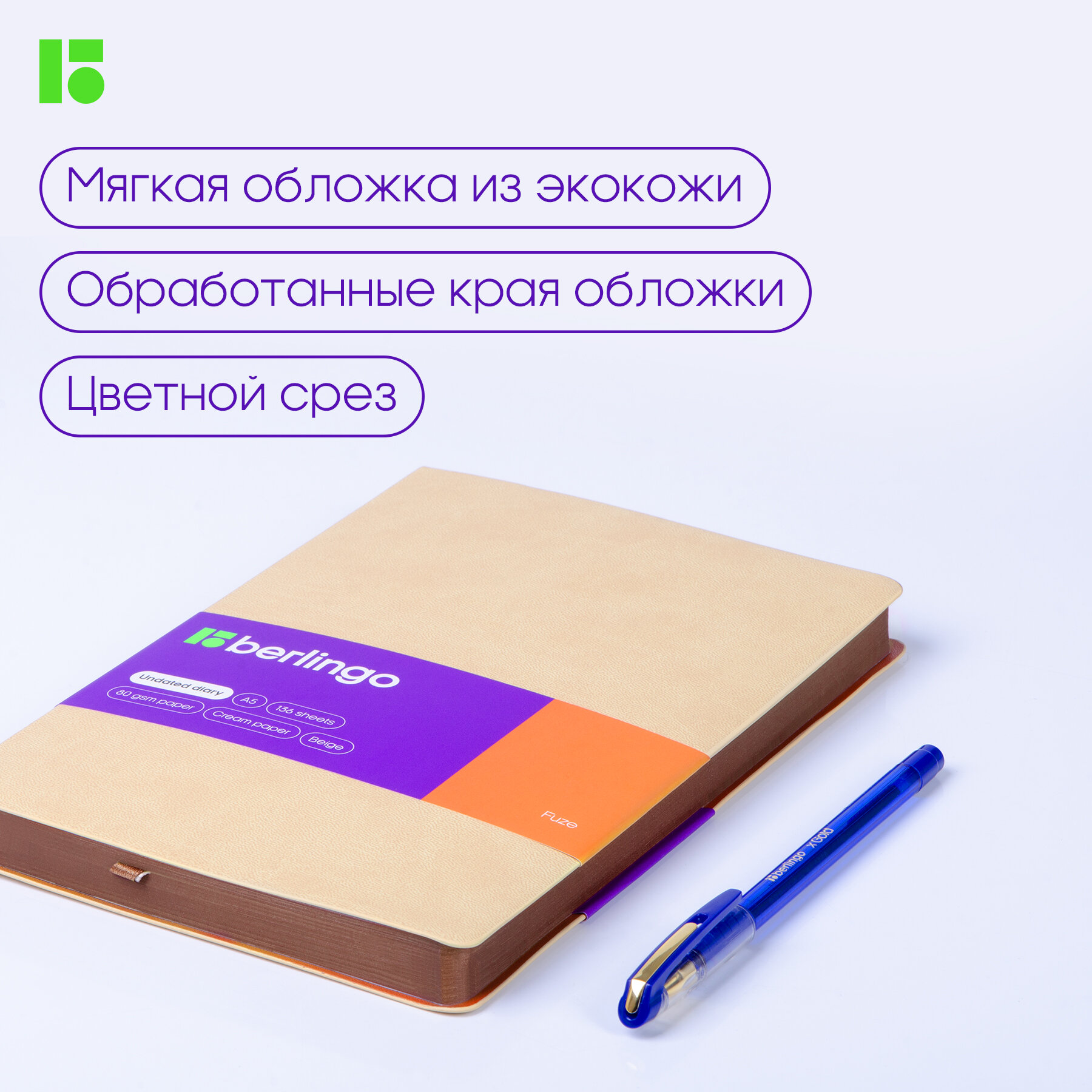 Отзывы на Ежедневник недатир. A5, 136л, кожзам, Berlingo "Fuze", цветной срез, бежевый