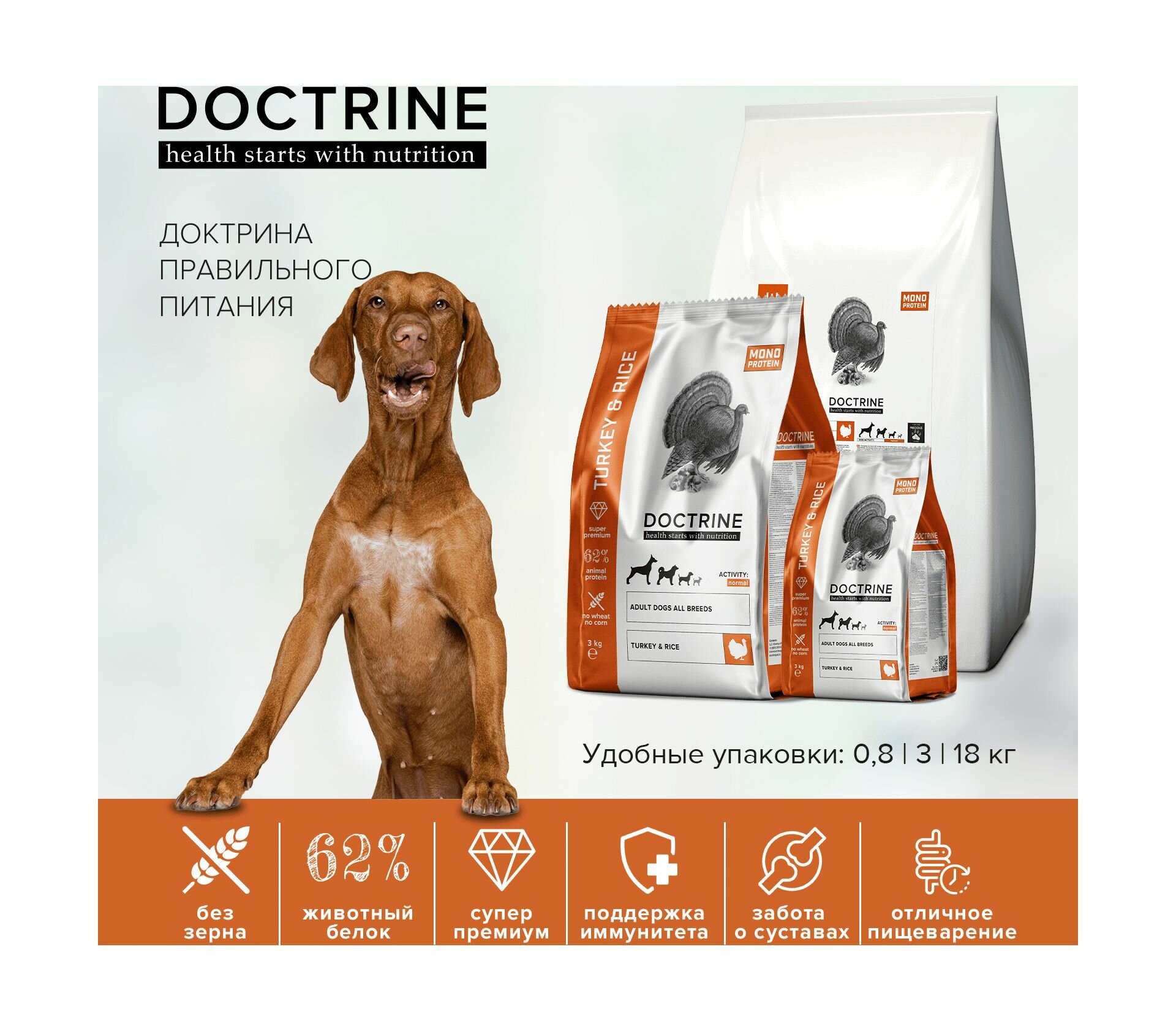 Doctrine - Полнорационный сухой корм для взрослых собак всех пород, с Индейкой, 18 кг (18 кг) информация: