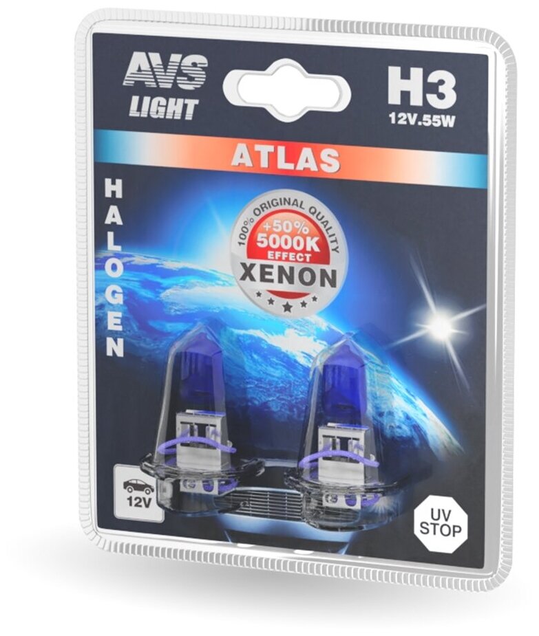 Лампа AVS H3-24-70 +50% 5000K Atlas из 2шт блистер