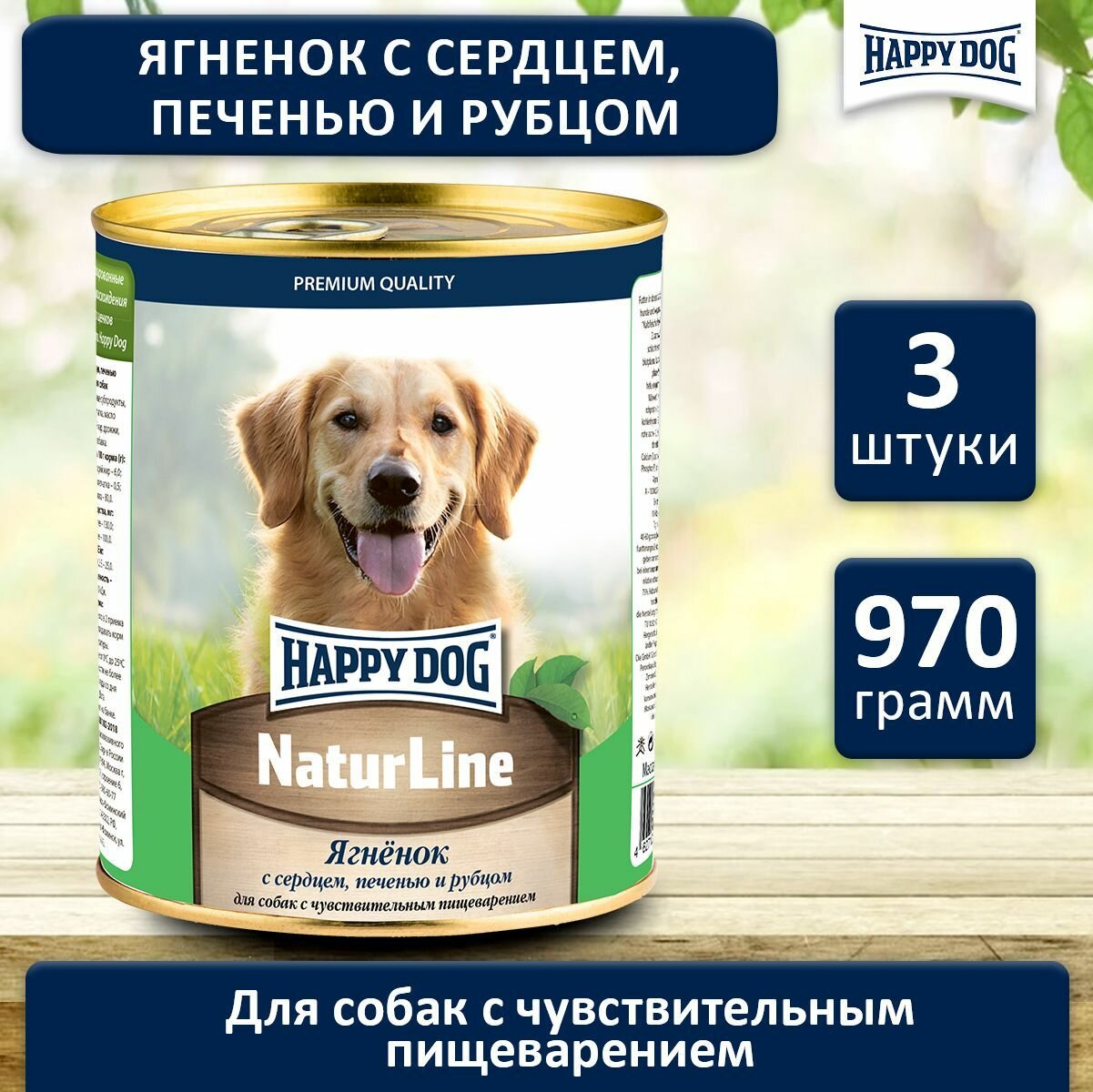 Консервы для собак Happy Dog NatureLine(Ягненок с сердцем, печенью и рубцом), 970 гр. по 3 шт.