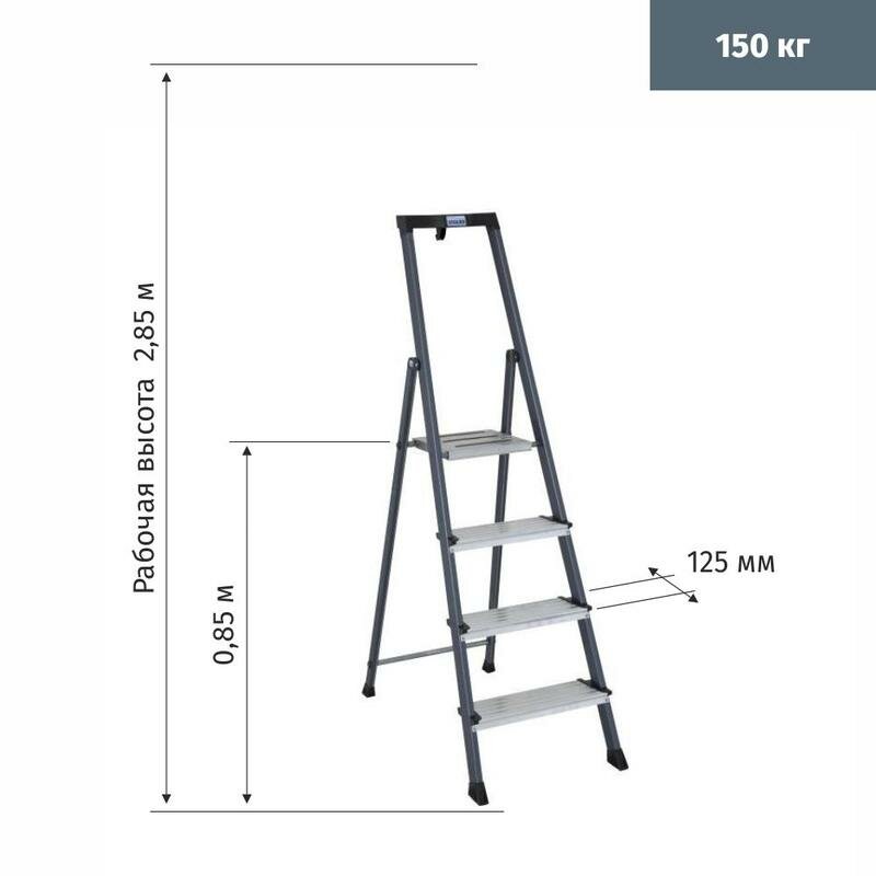 Стремянка алюминиевая Standers 4 ступени, максимальная нагрузка 150 кг