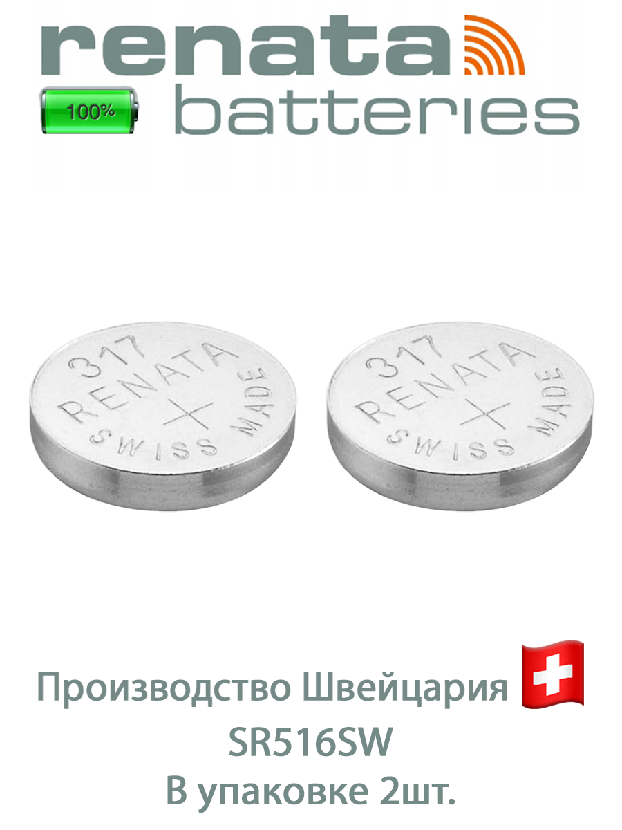 Часовая Батарейка Renata 317, 2 шт, SR516SW / SR62, Швейцария 380 ₽
