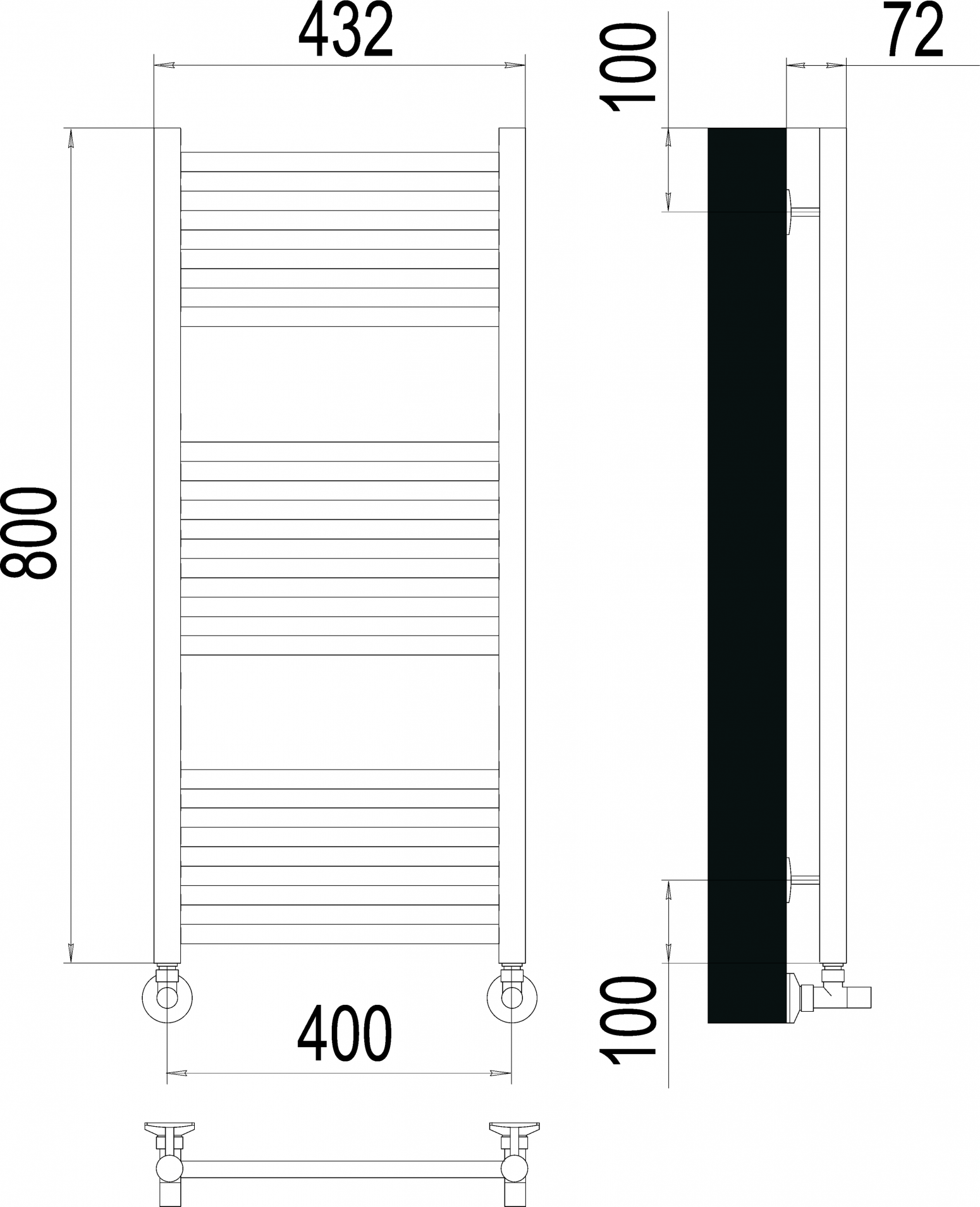Полотенцесушитель Водяной узкий с полкой Di Kron, модель Premium-T 800х400 боковое подключение 50 см слева угловое