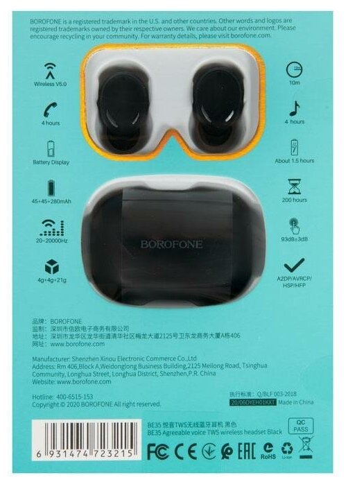 Наушники BOROFONE беспроводные BE35 Agreeable voice TWS, black информация: