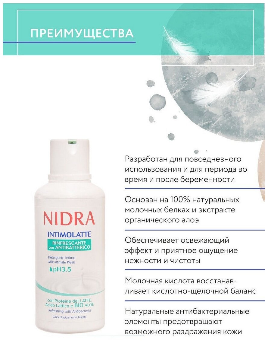 Nidra Гель для интимной гигиены освежающий с молочными протеинами и алоэ 500мл информация: