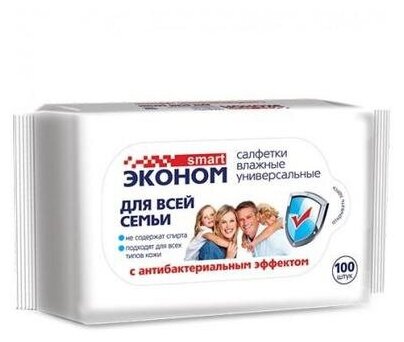 Салфетки влажные Эконом smart №100, для всей семьи, антибактериальные эффект, 100 шт (30258)