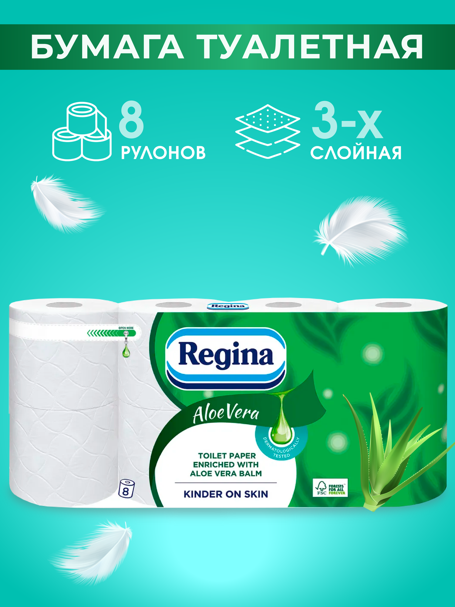 Regina Бумага туалетная белая Алое Вера 3 слоя 8 рулонов информация: