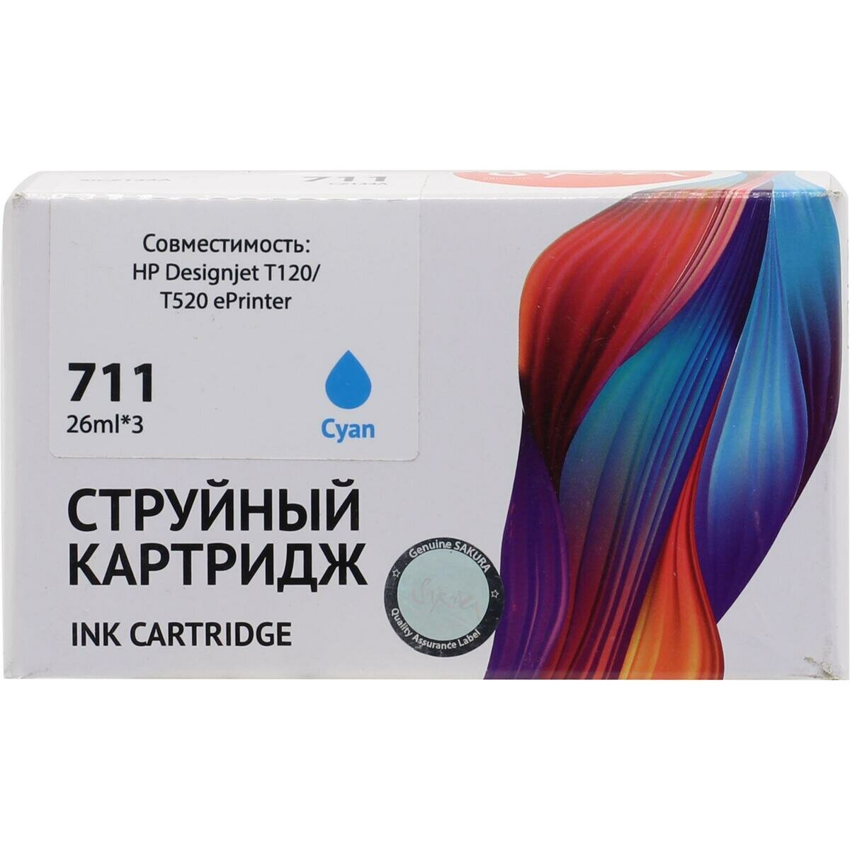 Набор струйных картриджей Sakura CZ134A (№711 Cyan 3-pack) для HP Designjet T120/T520 ePrinter, водорастворимый тип чернил, голубой, 26 мл. 2 004 ₽