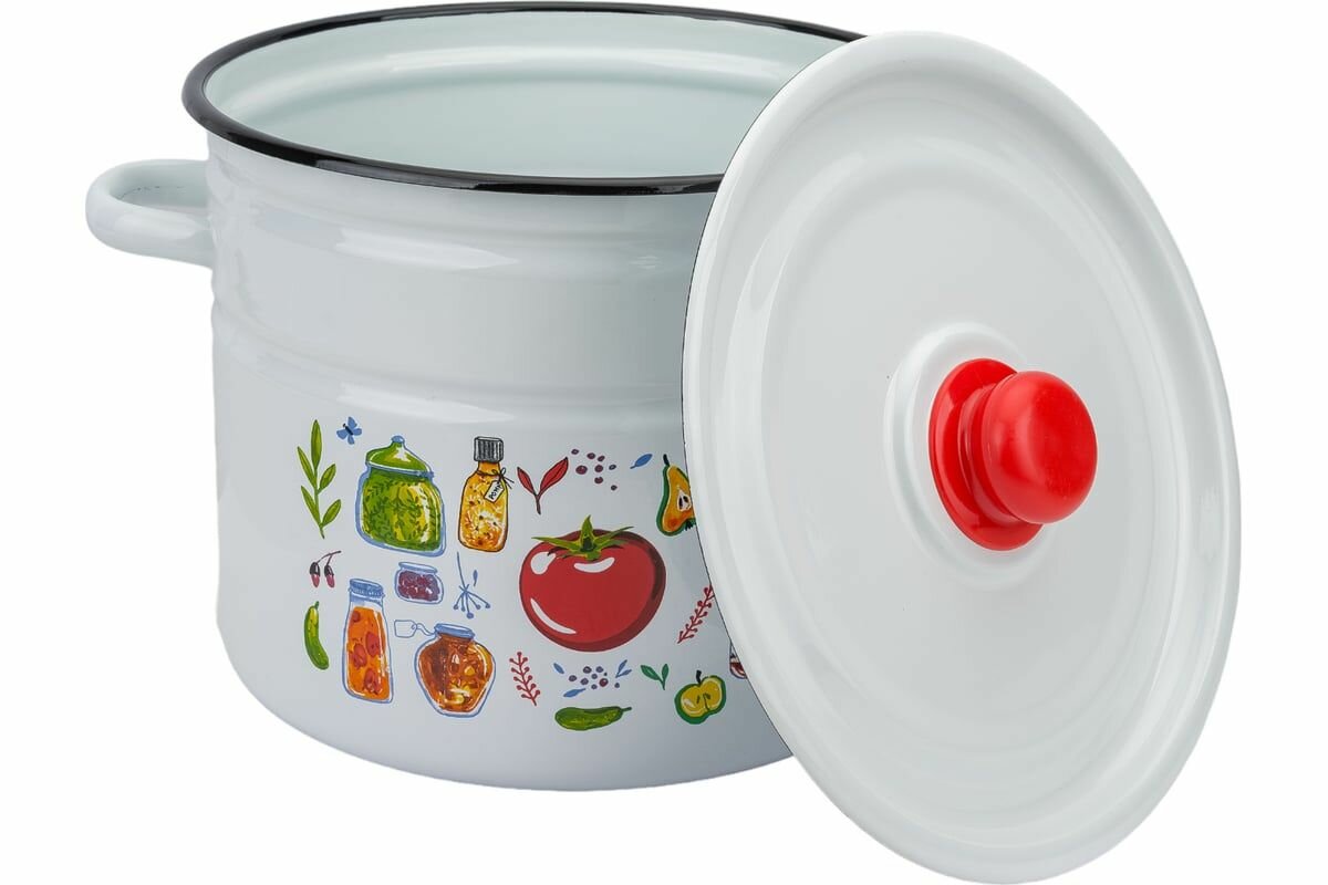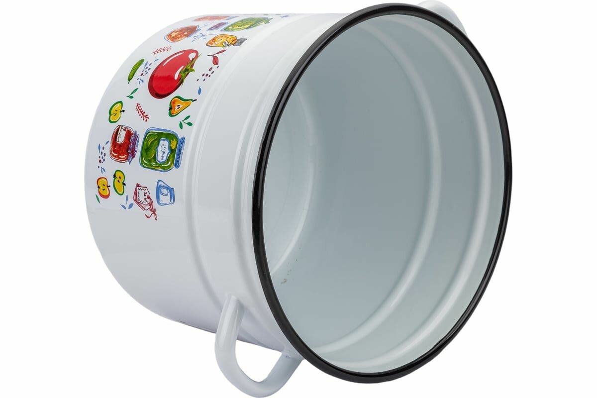 Кастрюля эмалированная 1,5 л с ободком белая с рисунком Фруктовая фантазия