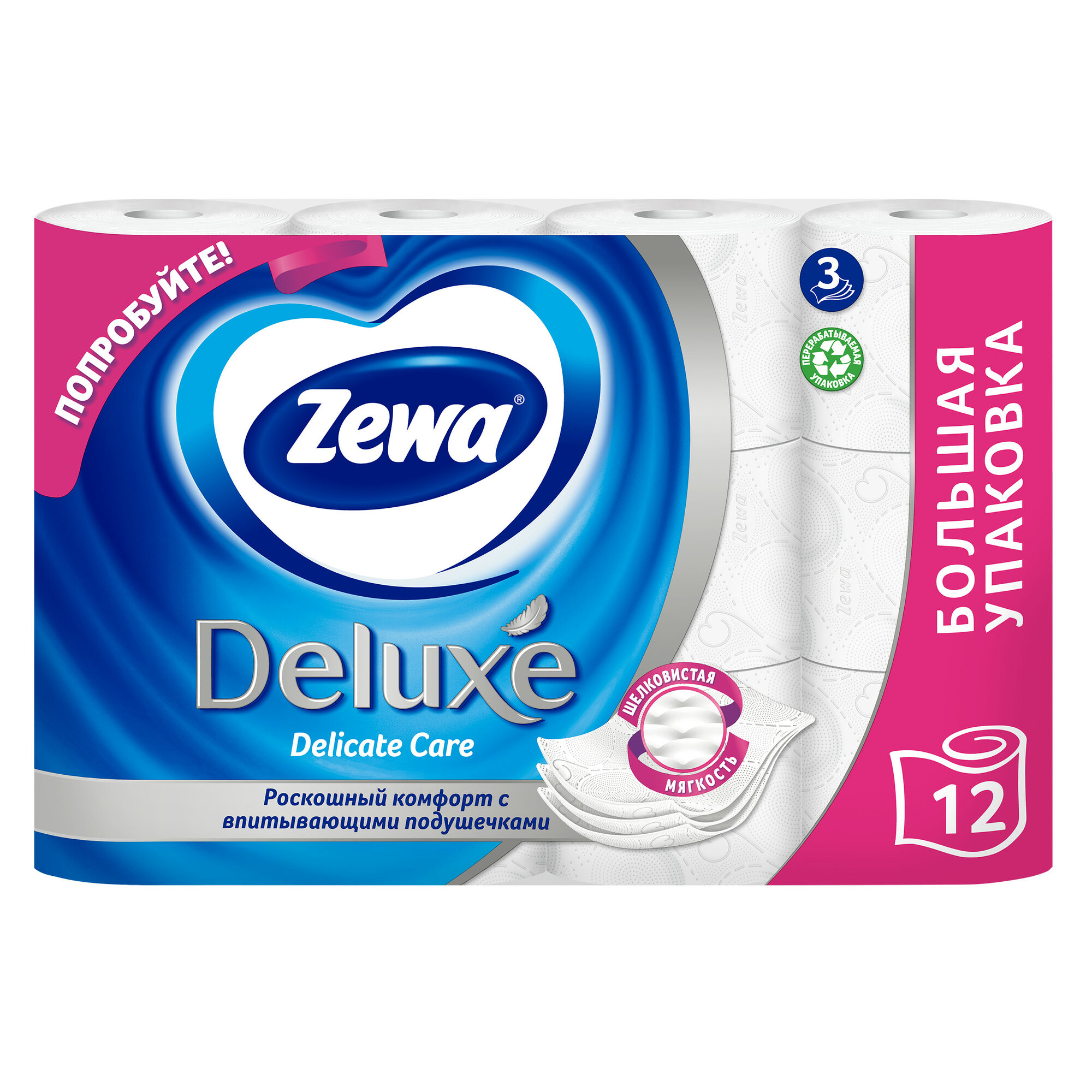 Туалетная бумага Zewa Deluxe Белая, 3 слоя, 12 рулонов информация: