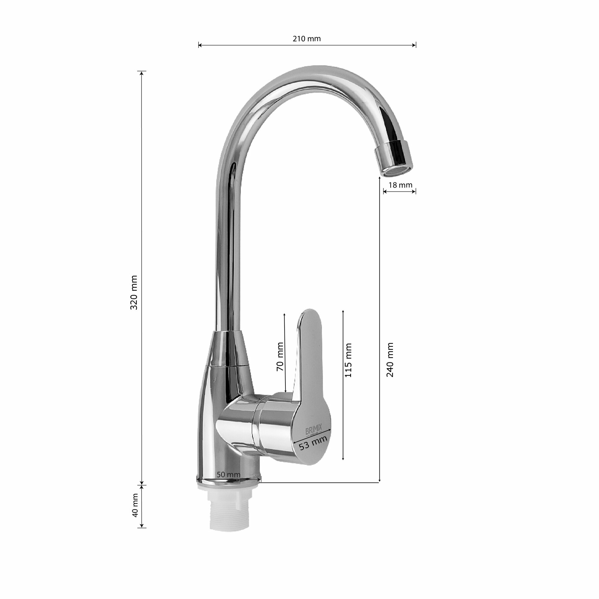BRIMIX 590 Смеситель на кухню, боковой , шаровый из высокопрочного пластика АБС - хромированный