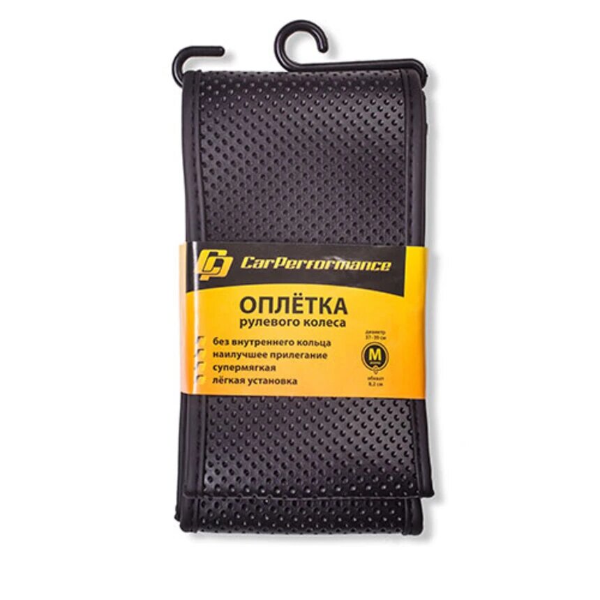 Оплётка руля CAR PERFORMANCE CP-2082 BK (M), экокожа, эластичная перфорированная основа без кольца чёрный, разм. М,