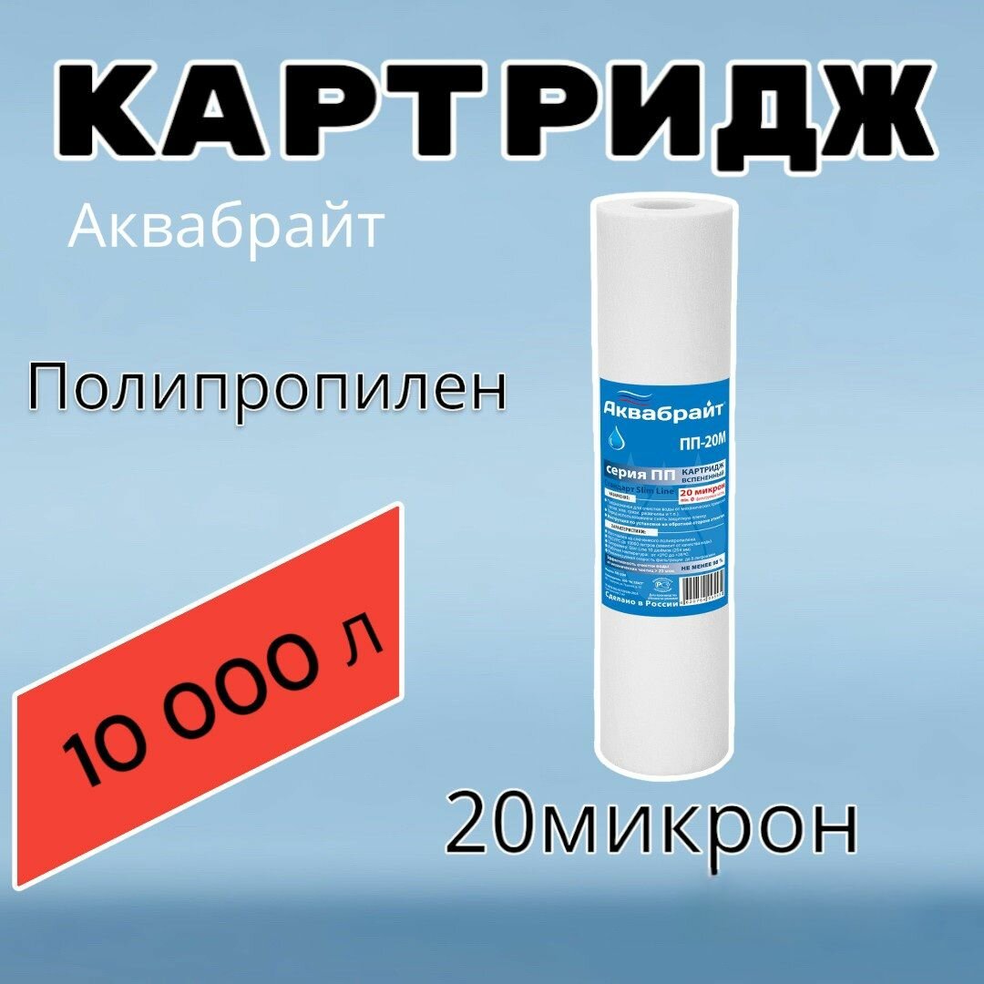 10 цен на Картридж для очистки воды полипропиленовый аквабрайт ПП-20М (1 шт), для фильтра, 20 микрон