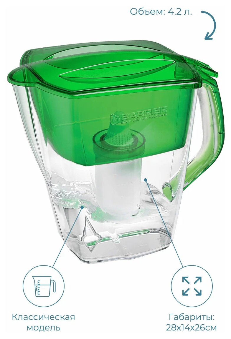 Фильтр для воды барьер гранд изумруд, зеленый, 4.2л (Г‚882Гђ00) 1 403 ₽