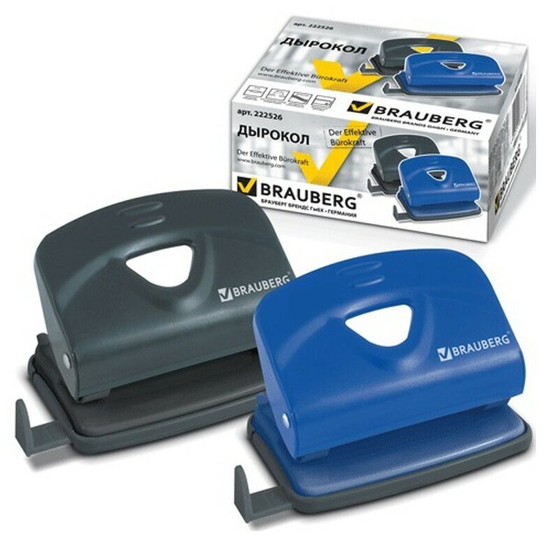 Дырокол металлический BRAUBERG "Universal+", до 25 листов, ассорти (синий /черный), 222526 В комплекте: 1шт. информация: