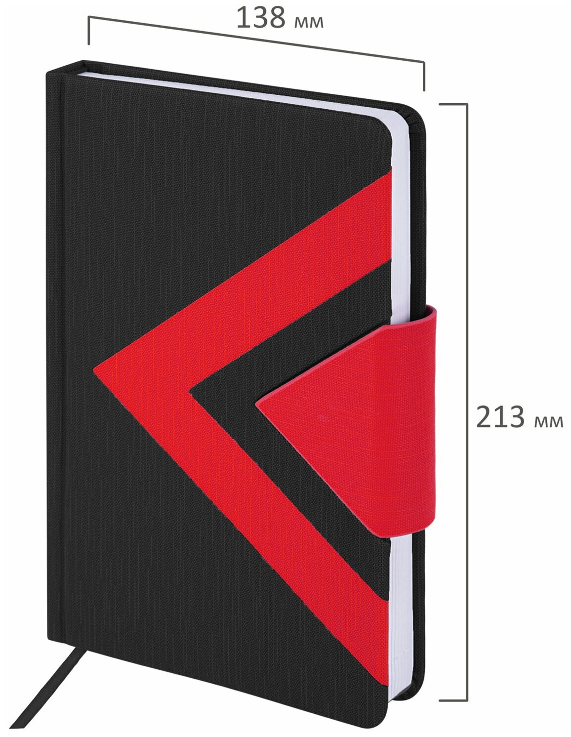 Ежедневник недатированный А5 138×213 мм BRAUBERG «Waves» под кожу, застежка 160 л., черный/красный, 111876 /Квант продажи 1 ед./ информация: