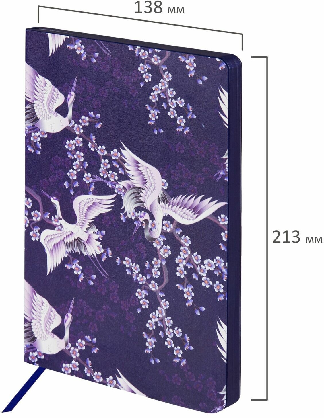 Ежедневник недатированный А5 (138х213 мм), BRAUBERG VISTA, под кожу, гибкий, 136 л., "Cranes", 112025 В комплекте: 1шт.