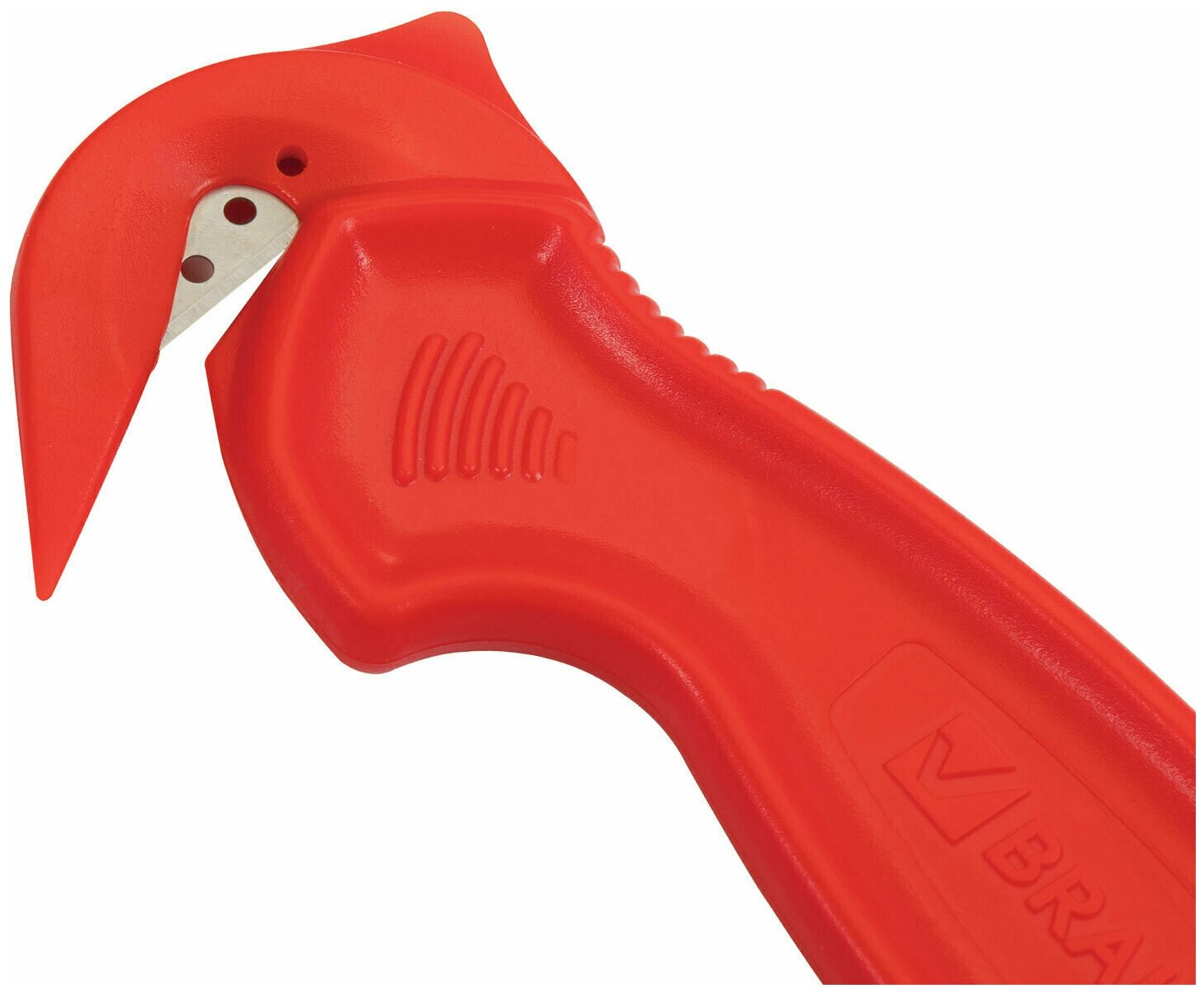 Нож BRAUBERG складской безопасный "Logistic", для вскрытия упаковочных материалов, красный, блистер, 236969