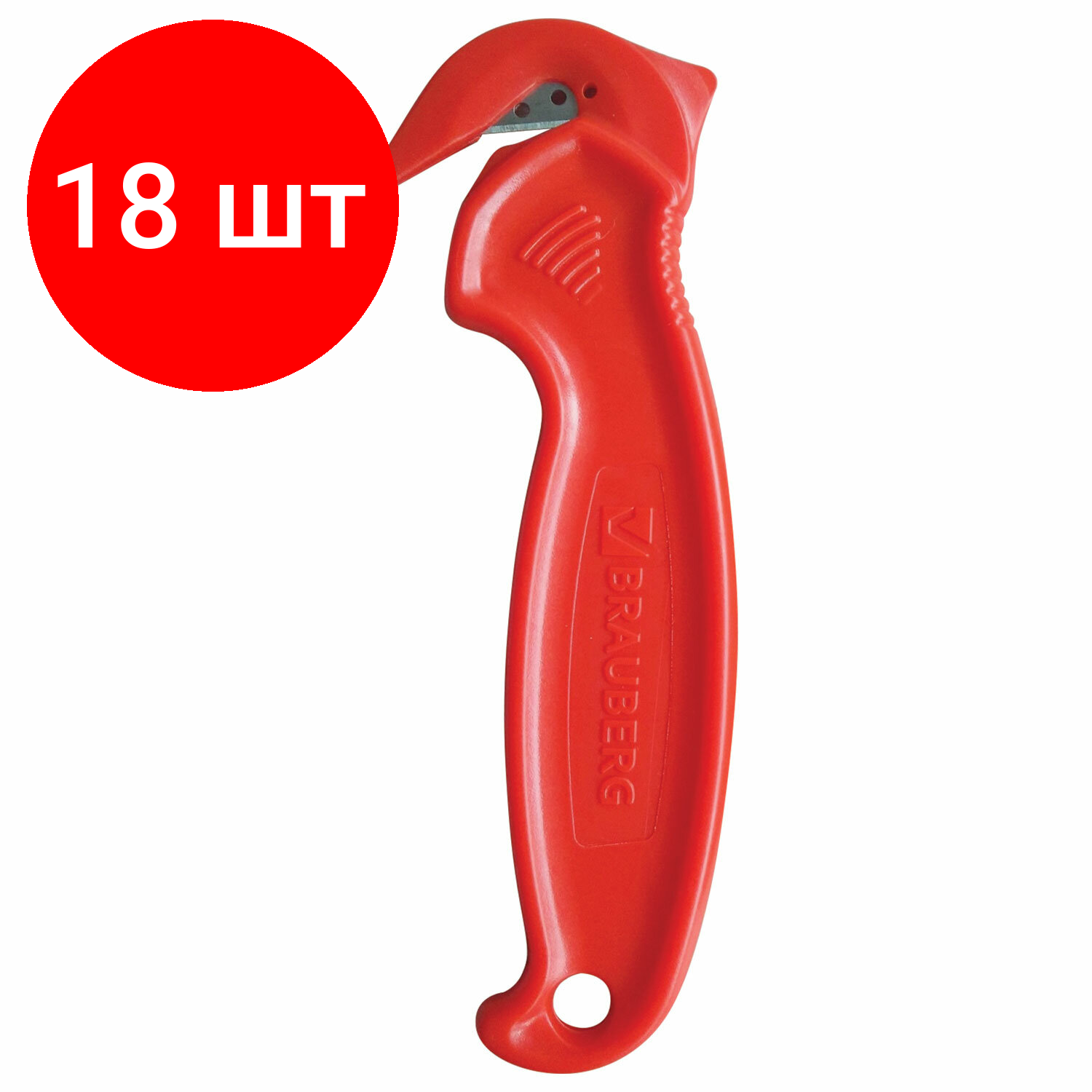 Комплект 18 шт, Нож складской безопасный BRAUBERG "Logistic", для вскрытия упаковочных материалов, красный, блистер, 236969 информация: