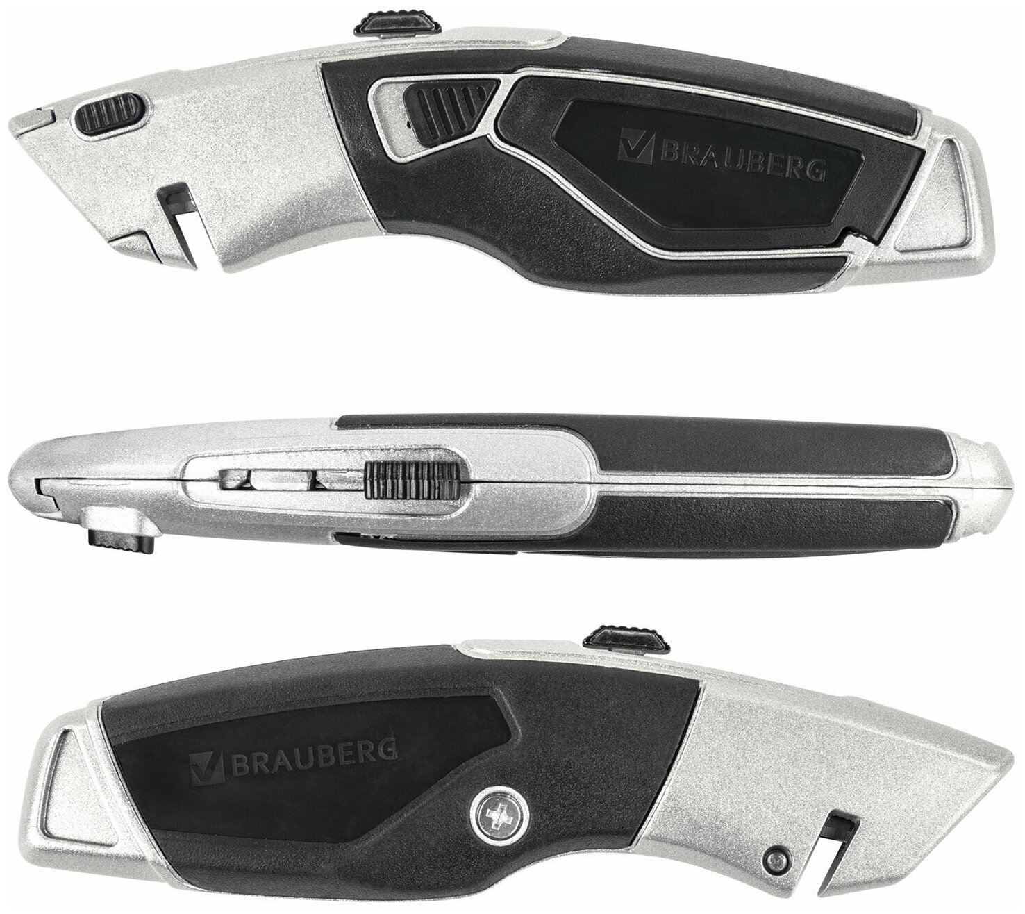Нож универсальный мощный BRAUBERG "Professional", 4 лезвия в комплекте, автофиксатор, металл, 237160, 1 шт
