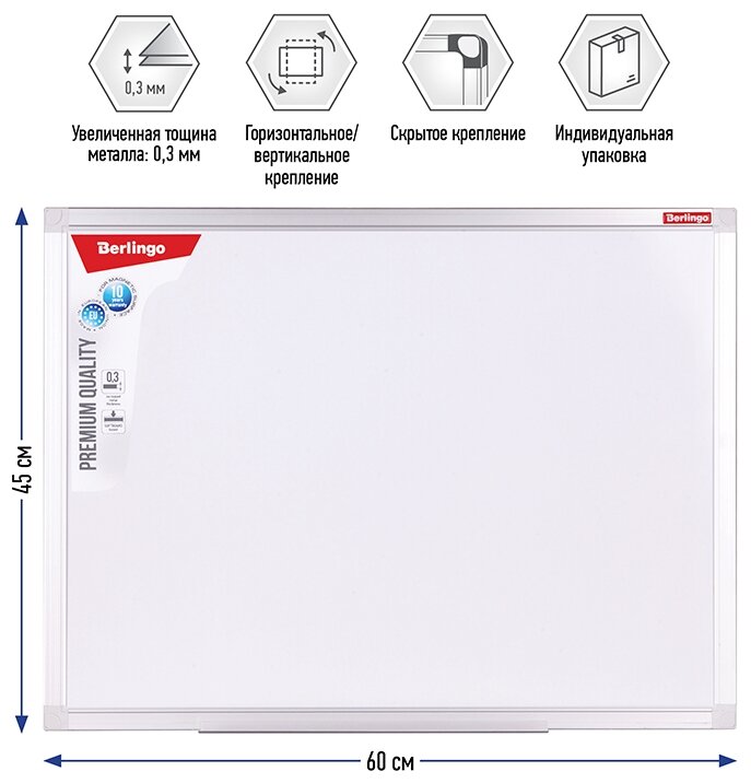 Отзывы на Доска магнитно-маркерная Berlingo 45x60 см Premium, алюминиевая рама, полочка