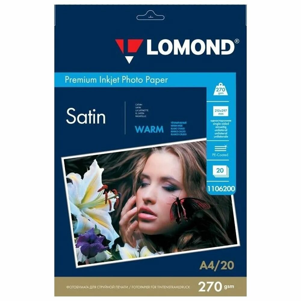Фотобумага Lomond A4, 270 г/м2 (20 листов) атласная тепло-белая (Satin Warm) (1106200)