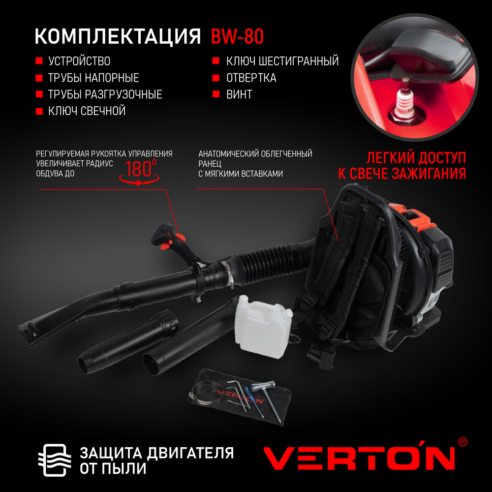 Воздуходувка бензиновая ранцевая VERTON BW80 информация: