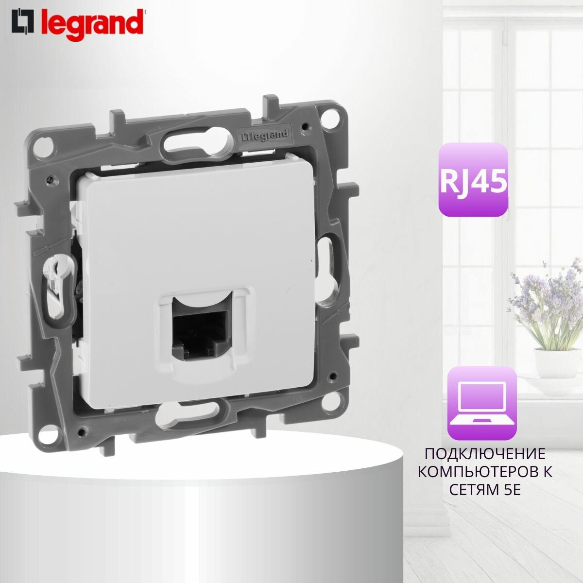Розетка компьютерная 1xRJ45 Cat.5 ETIKA, белый | код. 672241 | Legrand ( 1шт. )