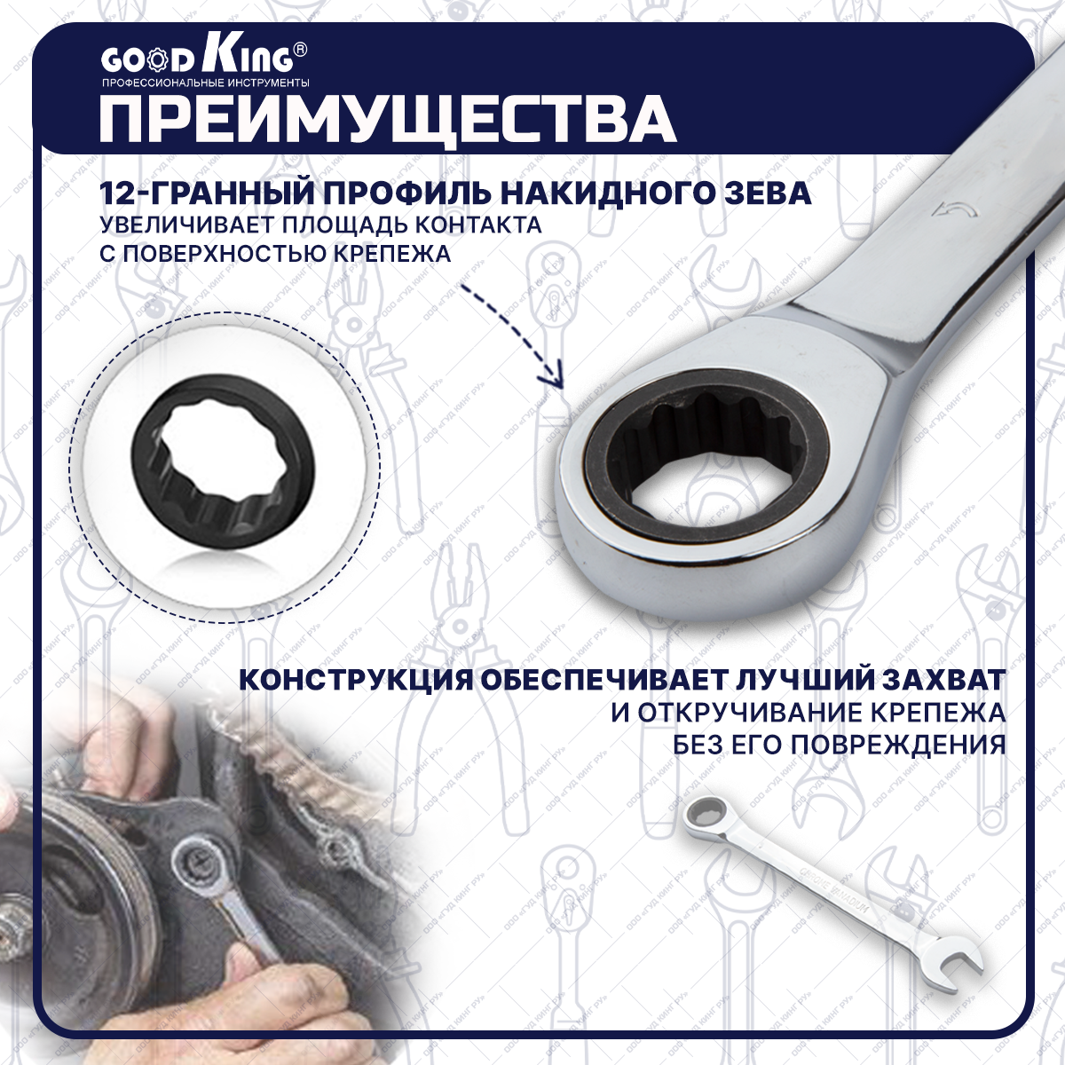 Набор комбинированных трещоточных ключей GOODKING TKK-10008 информация:
