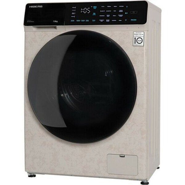 Стиральная машина HIBERG i-DDQ9 - 712 Ym, инверторная, 7 кг загрузка, 1200 об/мин, 16 программ, Smart wash, таймер, прямой привод, бежевый мрамор