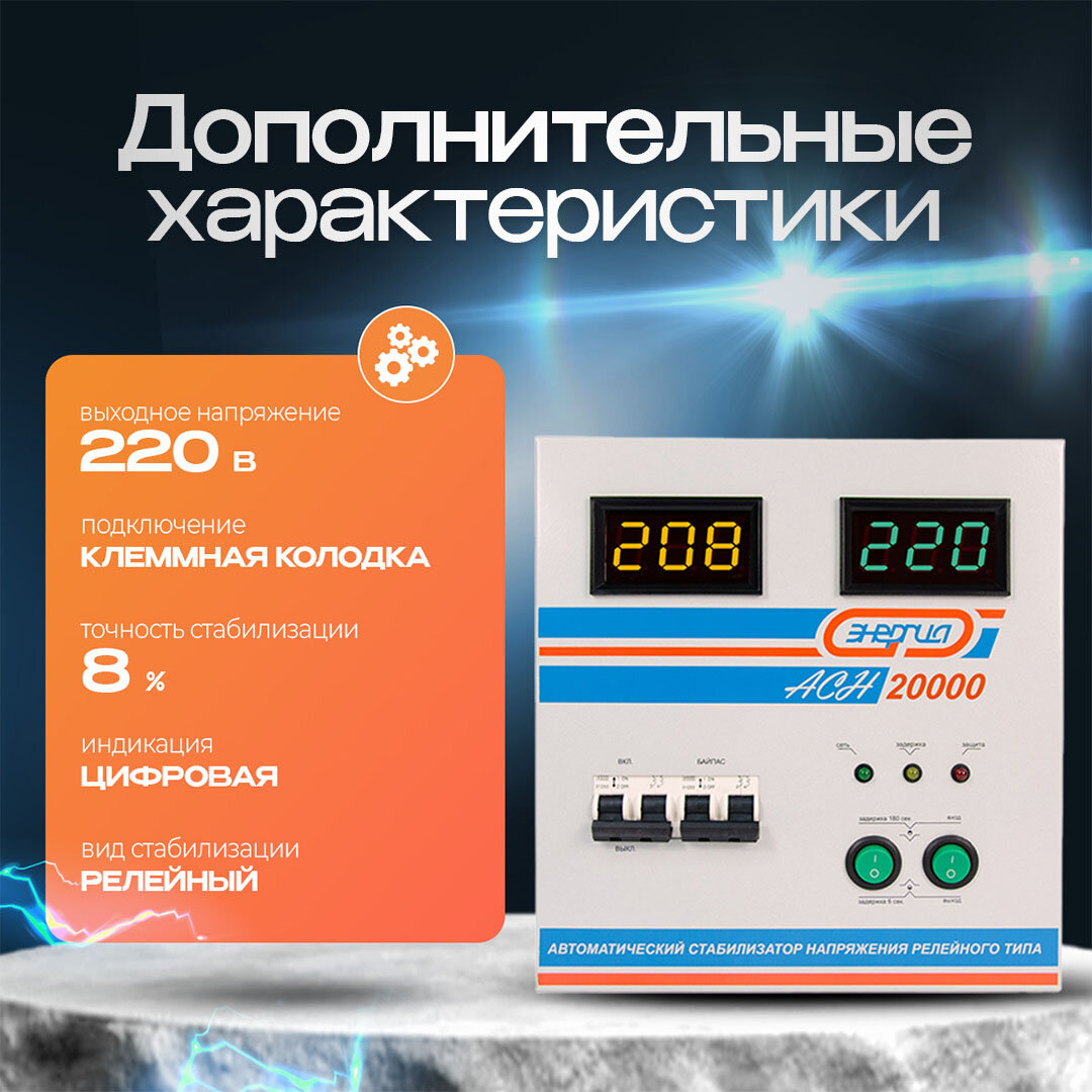 Стабилизатор напряжения Энергия АСН-20000, 20000 ВА, однофазный, для дома