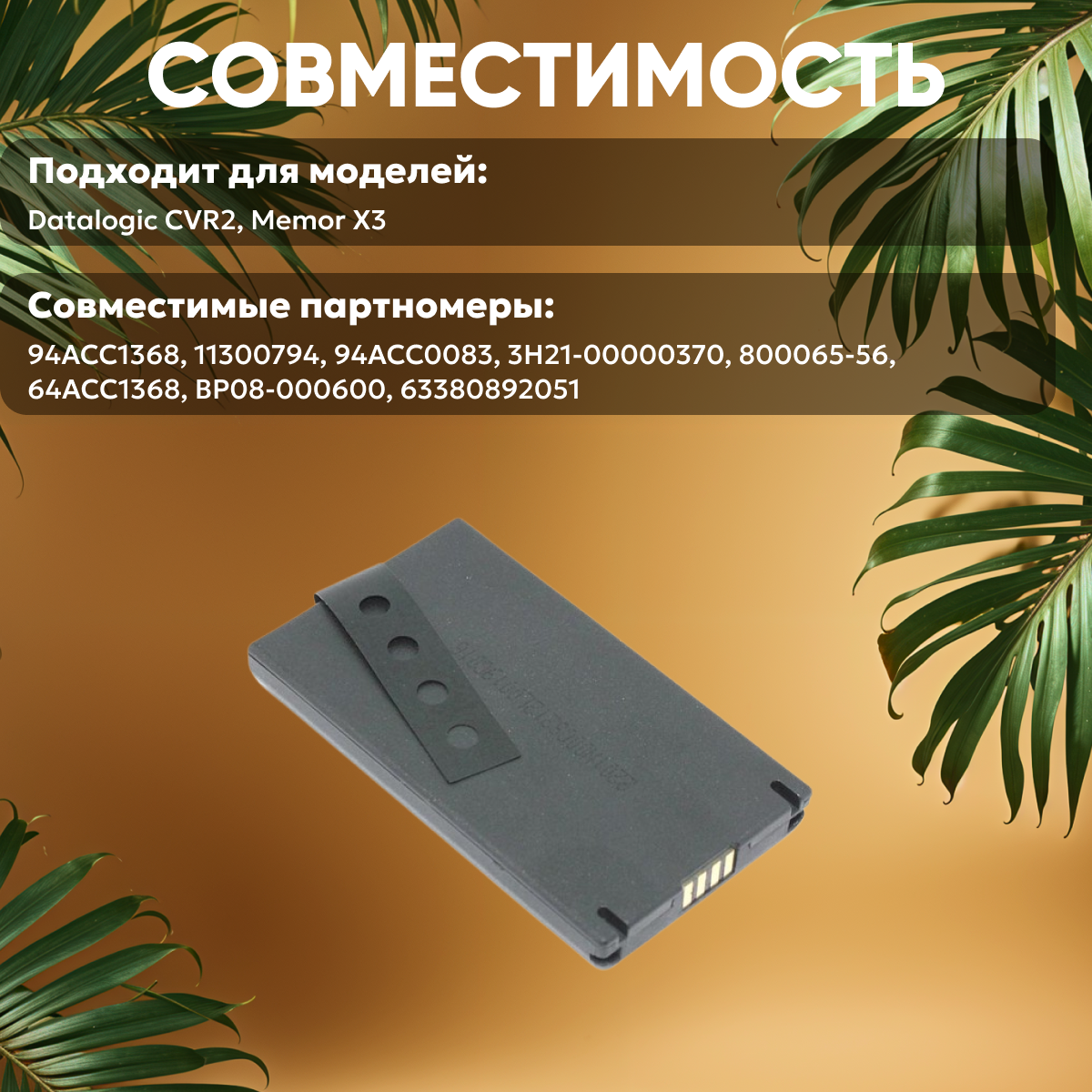 Отзывы на Аккумуляторная батарея (АКБ) CameronSino CS-DAV200BL для терминала сбора данных Datalogic CVR2, Memor X3, 3.7В, 1000мАч, черный