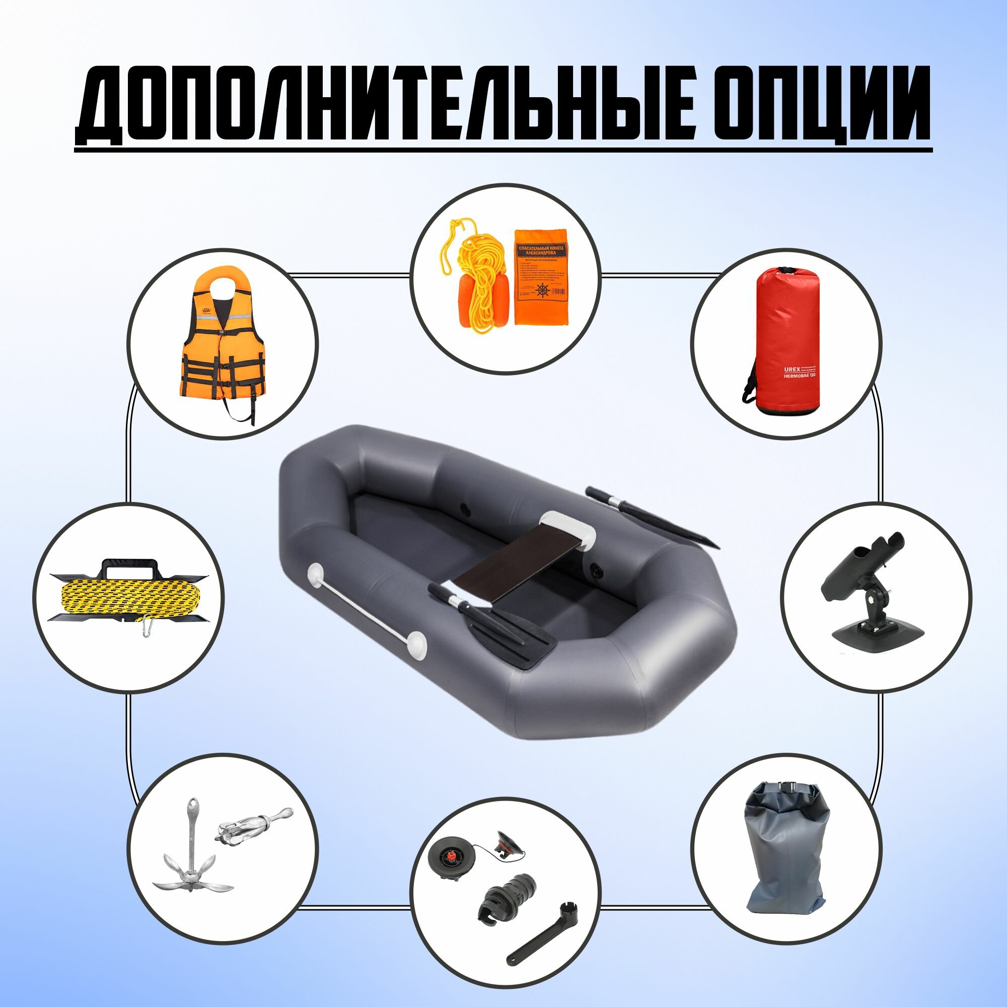 | Бортовое оснащение | уключины, ручки для переноски, насос, ремкомплект |